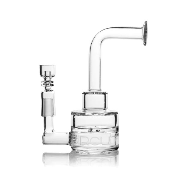 Dab Rigs are basically bongs that have a special attachment for vaporizing loose concentrates. A special bowl is used that can withstand super high heats to properly vaporize the concentrate. There are a few different styles of this bowl; A banger (sometimes called a honeypot) is a bucket shaped piece that is usually made of quartz glass. Regular borosilicate or similar glass cannot withstand the heats used and will shatter or crack on use. You can also get ceramic or titanium attachments as well, usually in a nail style. Nails have flat tops or a small round reservoir with a hollow middle. Quartz is usually preferable, but all three can withstand the heats needed. To acquire the required temperature, a torch or electric attachment is needed. A butane or propane torch is cheapest, but the timing and flame level can be hard for some guests to master. An electric nail can be a good way to eliminate the guesswork, but will run much more expensive. Once the nail/banger is at the desired temperature, a small bit of concentrate is placed on the surface while inhaling simultaneously. You can also “cold start” with a carb cap (a small cap that fits on top of a banger) and a banger by dropping the concentrate in first, placing the cap on top, and heating from below until vapor starts to form. This method does not work for all concentrate and rig types, and usually takes some practice before mastering, so it’s not for beginners.